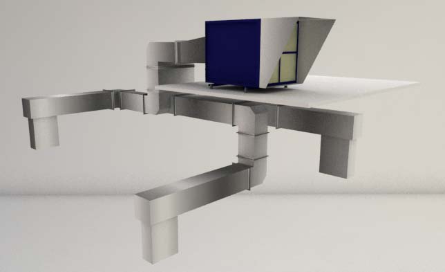 O Sistema é composto por uma caixa de ventilação que faz a captação do ar externo, que passa por uma bateria de filtros descartáveis (classe G4) existente no equipamento, ocorrendo a retenção de poeiras e partículas poluentes. Assim, o ar é conduzido através de um ramal de dutos até o ambiente interno da cozinha, sendo distribuídos através de grelhas de insuflamento posicionadas estrategicamente, evitando grandes correntes de ar e interferência com chamas de fogões.